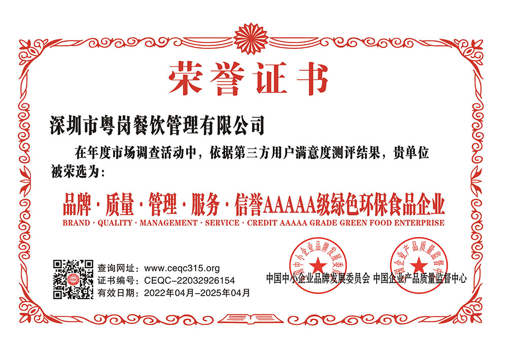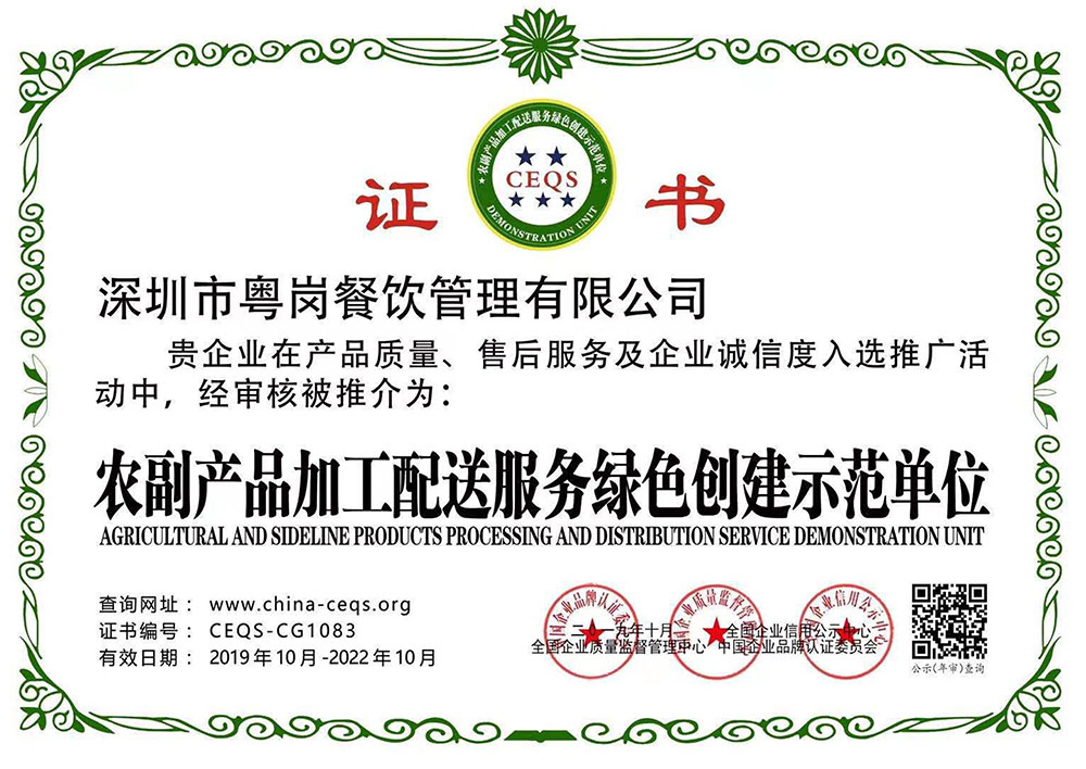 粵崗蔬菜配送榮譽(yù)墻